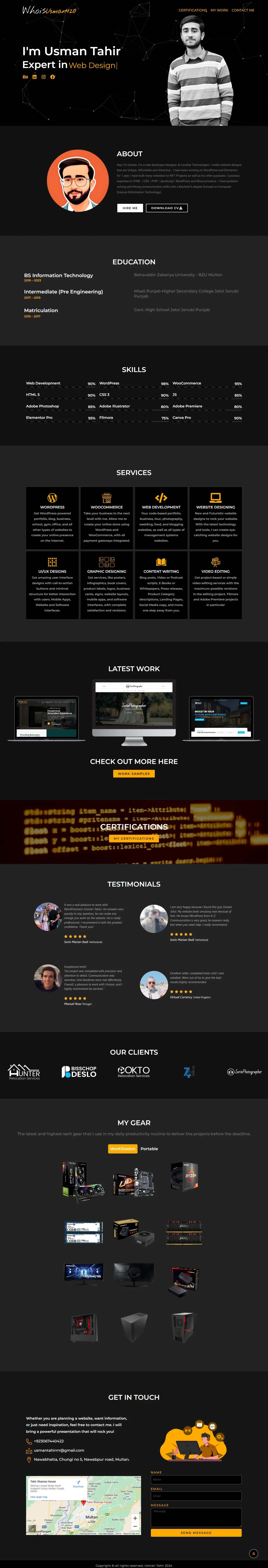 I am very happy because I found this guy, Usman Tahir (Webstache Technologies). My website looks amazing now because of him. He knows WordPress from A-Z. Communication is very good; he answers really fast when you need help. I really recommend.